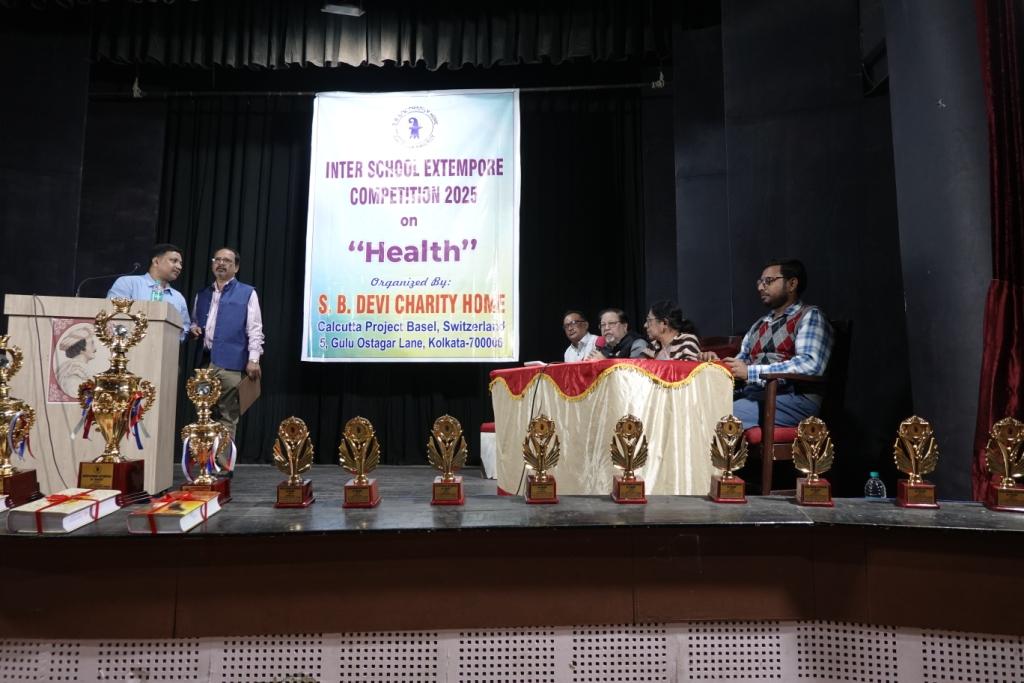 Image Gallery S.B. Devi Charity Home Inter School Extempore Competition 2025 GS signing certificate for the participants Moumi performed the role of anchor participants on the stage prize distribution students after winning the prize different school teachers and students’ Dr. Tapas Jana with our guest Proff. Sreeparna Dutta felicitation of our guest Dr. Soumyajit Das, Entamobologist winners with teachers and SBDCH staff GS with judges SBDCH staff Sree Sanatan Dharam Vidyaiaya Pri Sree Prokash Vidyalaya Sree Ma Probesikshalaya Lelin Prathamik Vidyalaya Saudagar Potty Islamia primary Schol Sree Bhagwaboti Balika Vidyalaya Madrasha Islamia Amrashi Vidyalaya Rakhi celebration World AIDS Day Konika Night Shelter Children’s Day Celebration Counseling on Breast cancer Surprise Test